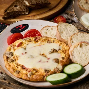 Армянский омлет с томатами, сыром Моцарелла и свежим салатом