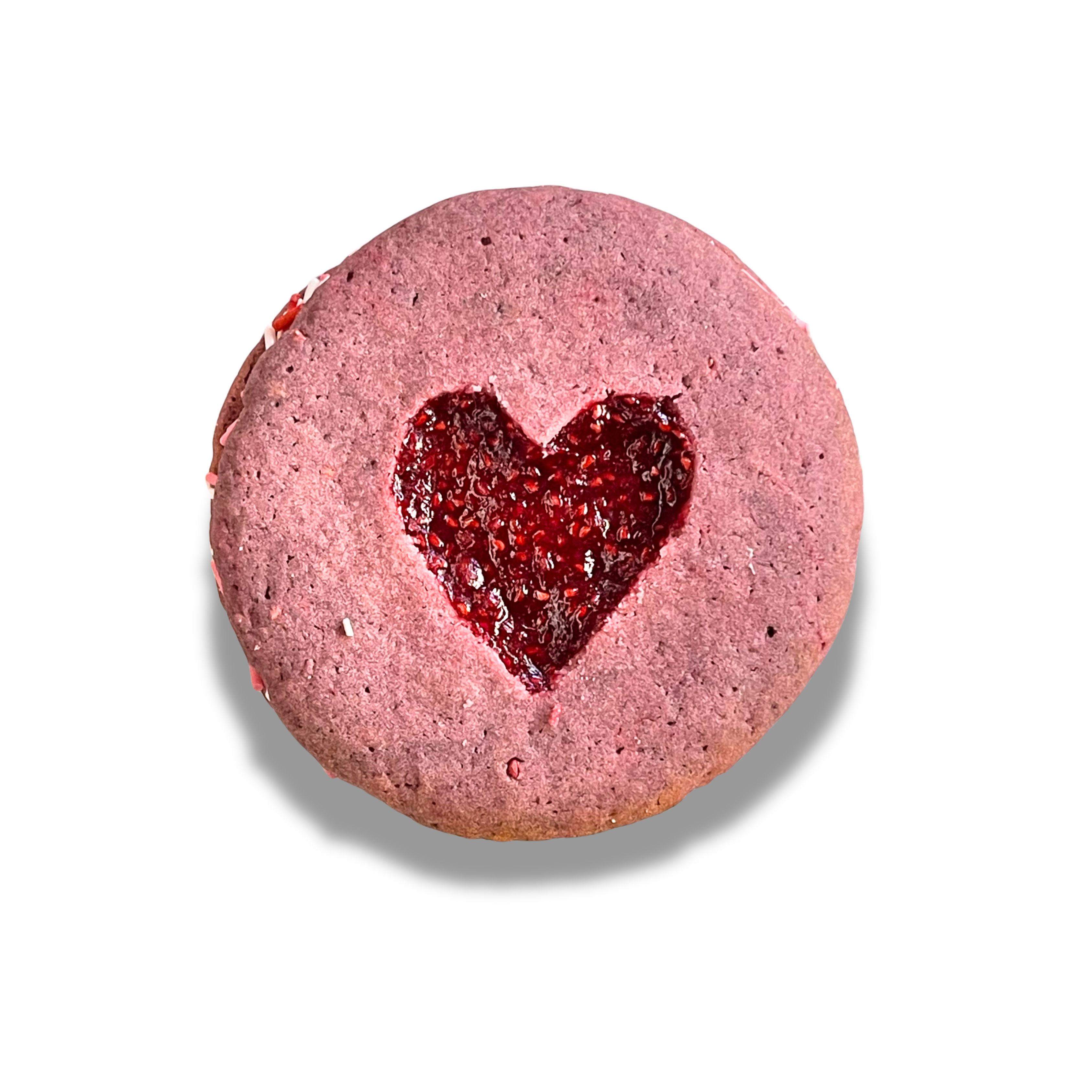 Печенье с малиновой начинкой, глазурным кремом из сливок, и посыпкой