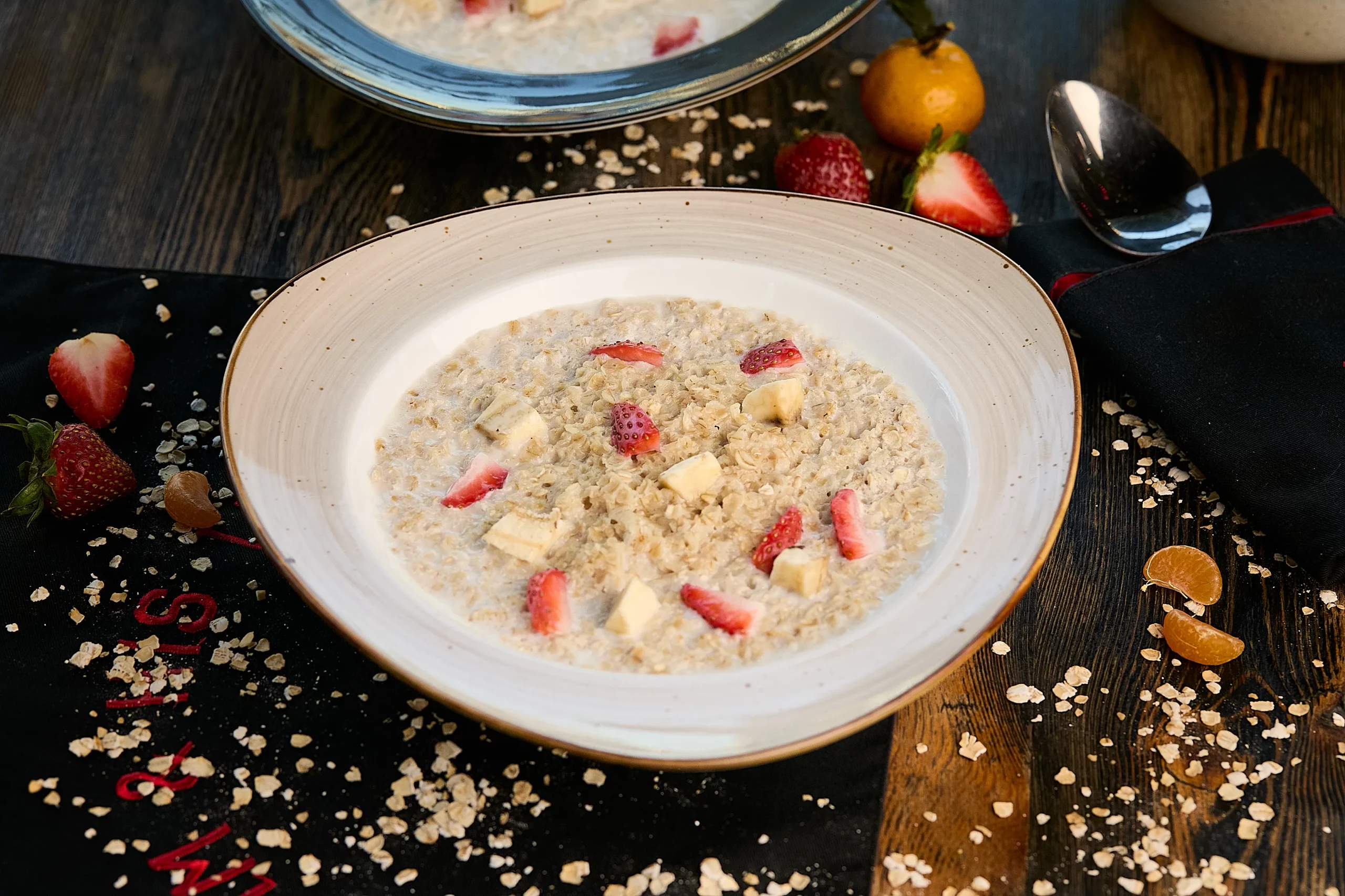 Творог с сезонными фруктами,изюмом и грецкими орехами